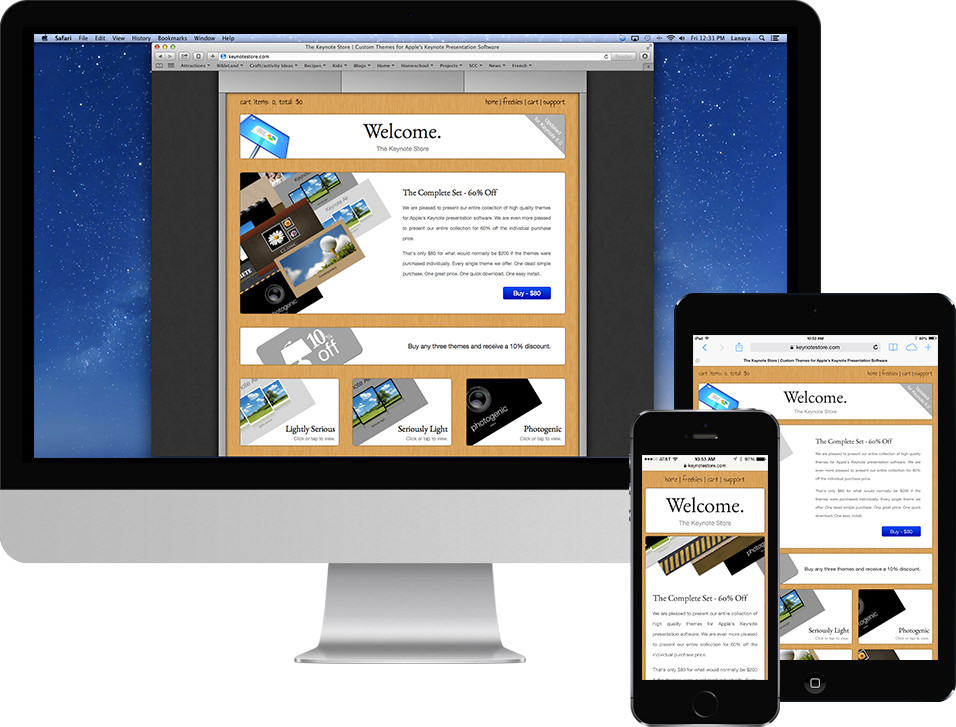 The Keynote Store was just transitioned to responsive design, a technique of creating one site with one look and feel that responds to an infinite number of screen sizes. Responsive design is key for any site in today’s world of mobile devices. If you would like to know more please contact us.